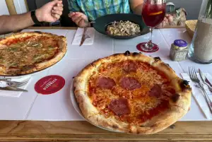 Lo que hace único a este spot es su fusión de comida y bebida de calidad con vistas impresionantes al mar. Prueba pizzas recién horneadas o mariscos frescos que capturan el sabor del Mediterráneo, todo en un entorno con mobiliario lounge y una terraza que parece extenderse hasta el horizonte. Los locales y visitantes coinciden en que es una opción altamente recomendada por su frescura y presentación impecable, ideal para un día en la playa sin complicaciones.