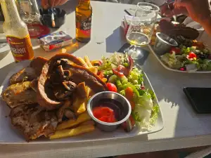 Entre sus ofertas destacadas, la Mosquito Sportbar sirve almuerzos y cenas con opciones variadas que incluyen platos vegetarianos sabrosos y frescos, ideales para quienes buscan algo ligero después de un chapuzón en el mar. Puedes optar por comer en el lugar en su terraza soleada o llevarte algo para disfrutar en la playa cercana. La carta de bebidas brilla con cervezas frías y vinos mallorquines, perfectos para acompañar tapas o una cena completa. Si prefieres planificar, es reservable con antelación, lo que evita esperas en noches de grandes eventos. Y para mayor comodidad, cuenta con entrada accesible para sillas de ruedas, asegurando que todos puedan unirse a la diversión sin barreras.