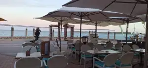 El ambiente en el Pirates Bay Club te transporta a una aventura pirata moderna, con decoración temática que evoca tesoros del mar y redes de pesca adornando el espacio. Sientes la arena bajo tus pies mientras te sientas en cómodas hamacas o mesas al aire libre, escuchando el suave romper de las olas. Es ideal para esas tardes perezosas donde el tiempo se detiene, y la energía positiva de los visitantes crea un vibe contagioso. Ya sea que vengas solo para leer un libro o con amigos para charlar, este club de playa te envuelve en una atmósfera acogedora y vibrante.