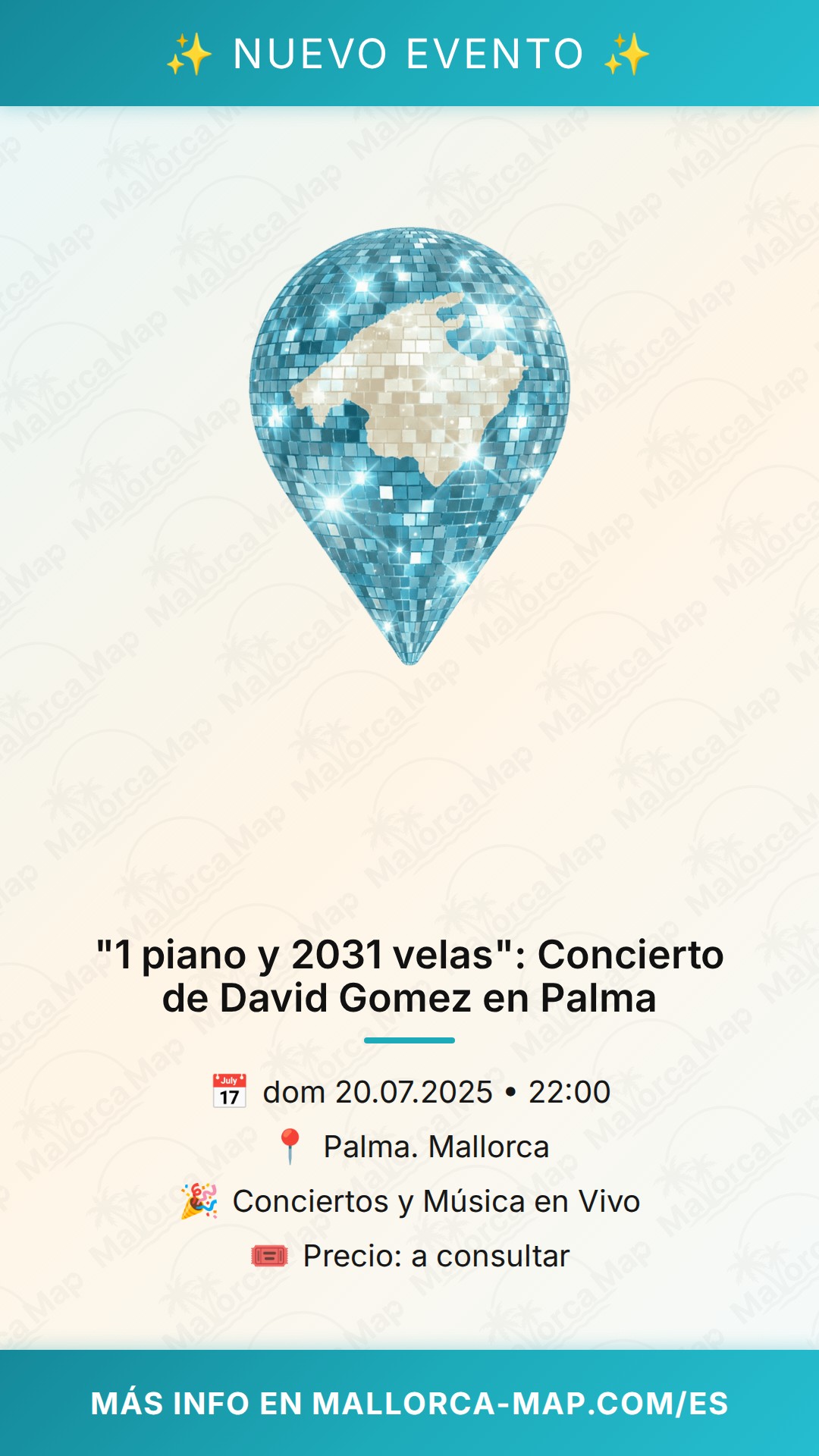 No pierdas la oportunidad de vivir una de las noches más especiales del calendario estival. Ven con tus amigos, tu pareja o simplemente trae tus ganas de dejarte emocionar por el talento de David Gomez. Te recomendamos llegar con tiempo para asegurar un buen sitio y sumergirte por completo en esta experiencia sensorial única. ¡Te esperamos entre velas y acordes en Palma!