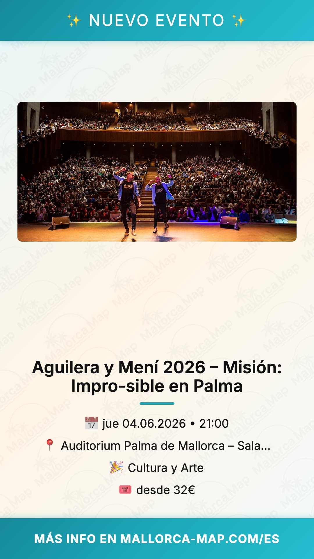 Acerca de Aguilera y Mení 2026 – Misión: Impro-sible en Palma