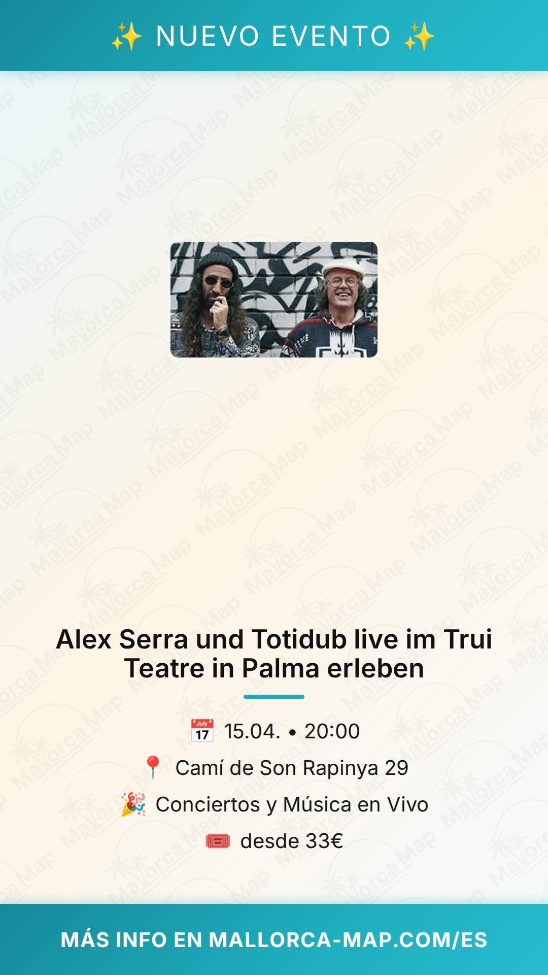 Acerca de Alex Serra und Totidub live im Trui Teatre in Palma erleben Conciertos y Música en Vivo