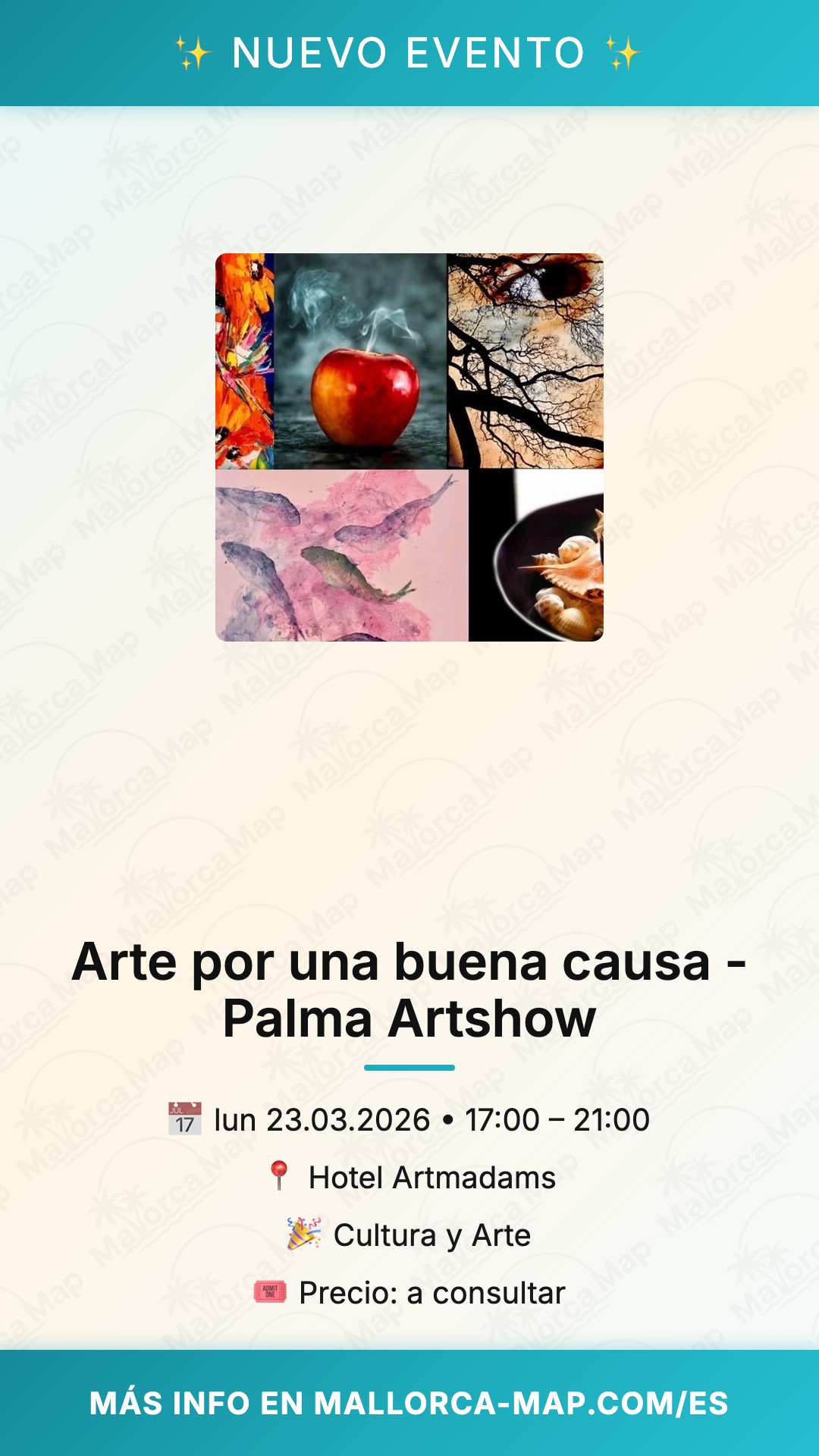 Si buscas un plan que combine creatividad y solidaridad, no te puedes perder Art for Good Reason - Palma Artshow el próximo 23 de marzo en Palma. Este evento único reúne a los artistas más destacados de Mallorca en una exposición benéfica diseñada para marcar la diferencia en la comunidad local. Es la oportunidad perfecta para que tú descubras obras impresionantes mientras contribuyes directamente a una causa noble que apoya a familias en situaciones vulnerables de la isla.