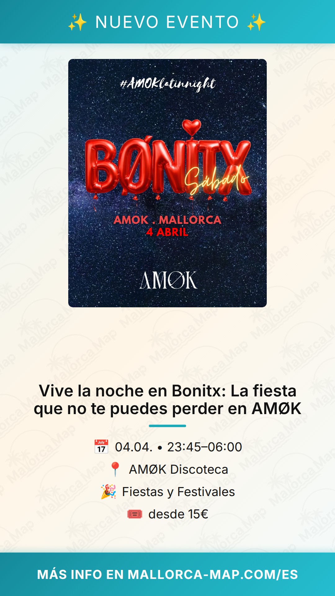 Si buscas una experiencia nocturna vibrante en Mallorca, marca el 4 de abril de 2026 en tu calendario. El evento Bonitx llega a la discoteca AMØK, prometiendo ser una de esas noches que se quedan grabadas en la memoria. Sabemos que cuando llega el fin de semana, lo que realmente quieres es desconectar, rodearte de buen ambiente y dejarte llevar por la música en un espacio diseñado para disfrutar al máximo. AMØK se ha consolidado como un punto de encuentro clave para quienes buscan calidad en sus salidas nocturnas, y esta edición de Bonitx no será la excepción.
