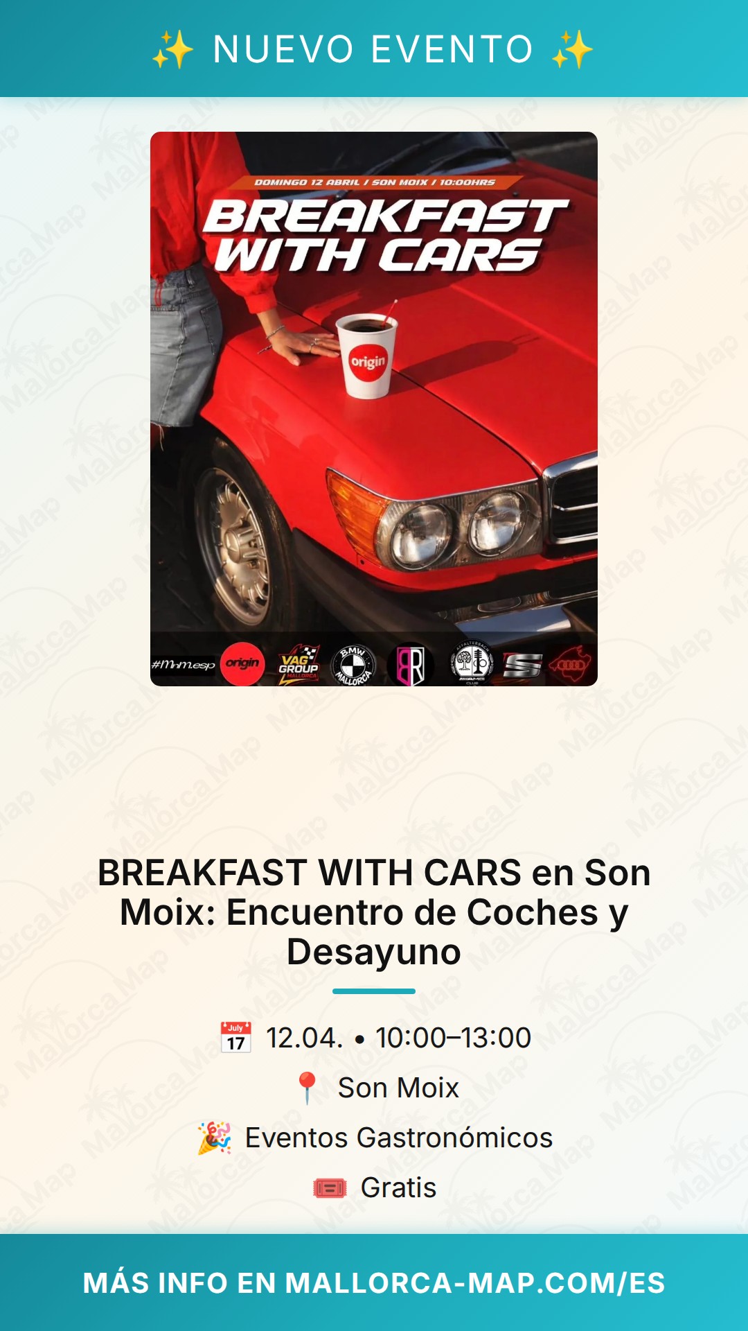 Acerca de BREAKFAST WITH CARS en Son Moix: Encuentro de Coches y Desayuno