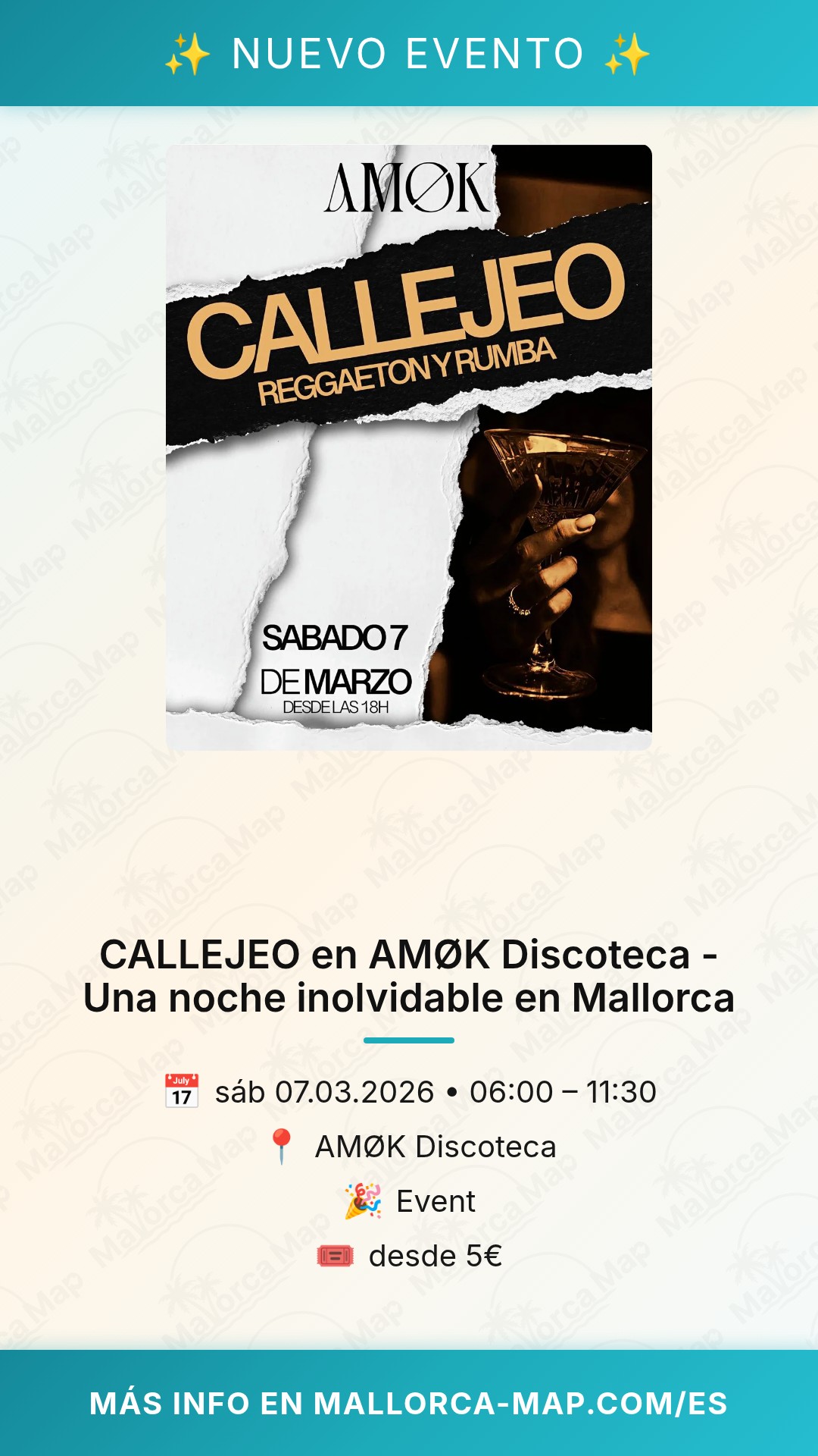 Te recomendamos llegar con tiempo para asegurar que aprovechas cada minuto de la noche. Aunque no tenemos detalles sobre precios específicos, asegúrate de organizar tu entrada con antelación para evitar sorpresas de última hora. No dejes que te lo cuenten: prepárate para una noche donde el ritmo, la gente y el ambiente de AMØK se combinan para ofrecerte una experiencia de ocio de primer nivel en el corazón de Mallorca. ¡Prepara tu outfit, convoca a tu grupo y prepárate para vivir CALLEJEO como se merece! Estamos seguros de que será una de esas noches de las que hablarás durante semanas.
