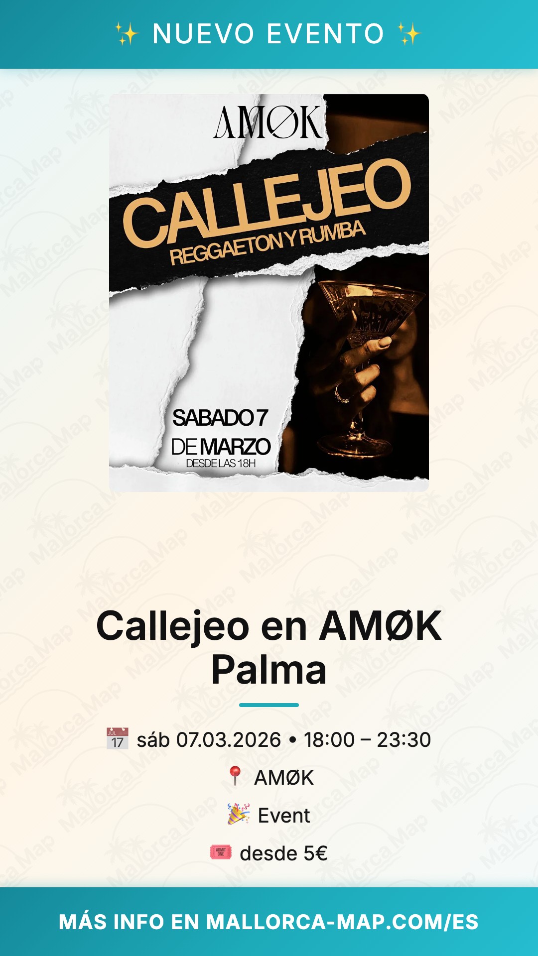 Prepárate para vivir una experiencia única con Callejeo en AMØK, el evento que está revolucionando las tardes de los sábados en Palma de Mallorca el próximo 7 de marzo. Si buscas un plan diferente para disfrutar del fin de semana, esta cita combina ritmos urbanos con un ambiente inmejorable en uno de los espacios más vanguardistas de la isla. No dejes pasar la oportunidad de sumergirte en esta propuesta de ocio alternativo que promete ser el punto de encuentro de referencia para todos los amantes de la buena música.