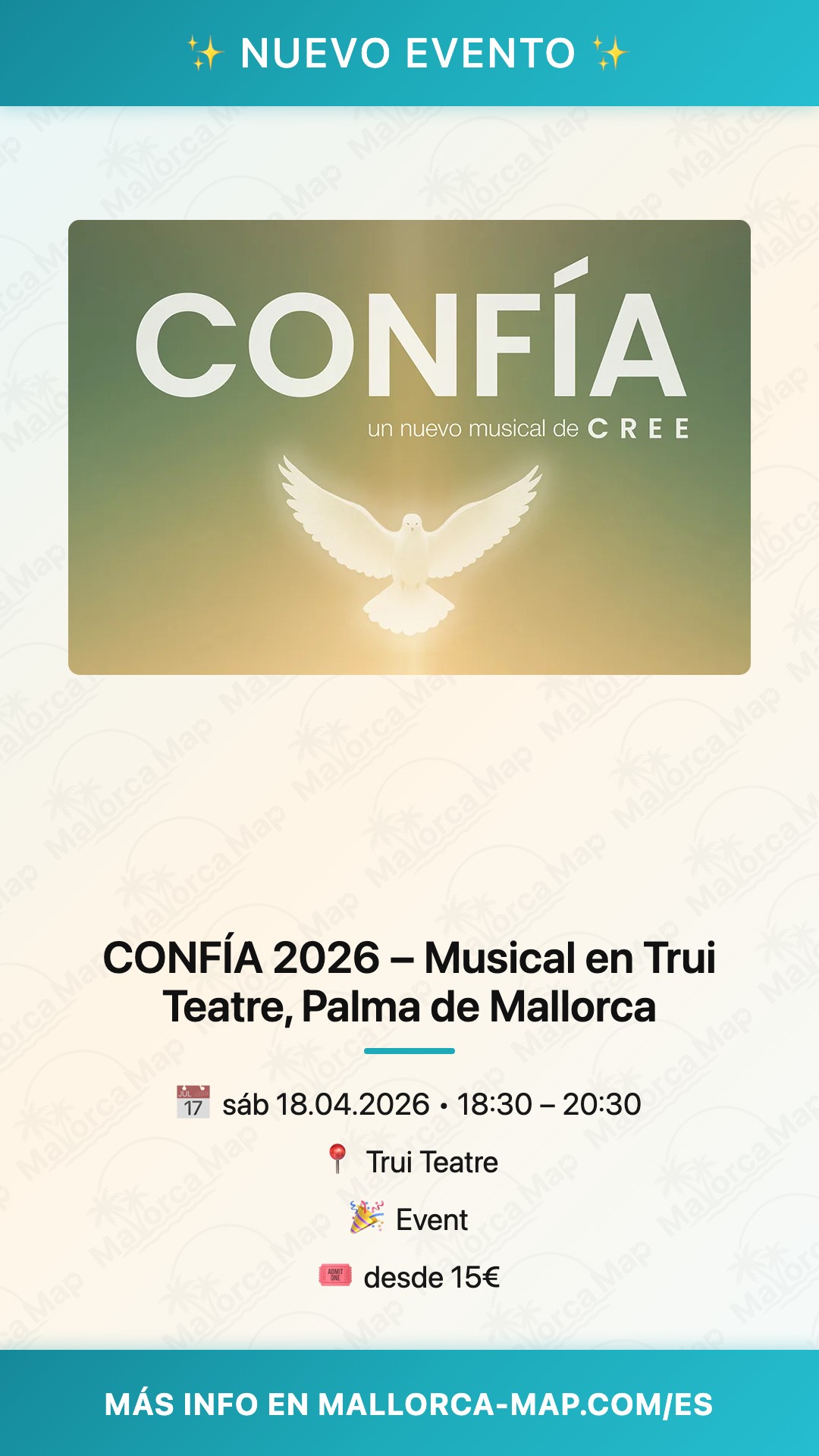 Acerca de CONFÍA 2026 – Musical en Trui Teatre, Palma de Mallorca
