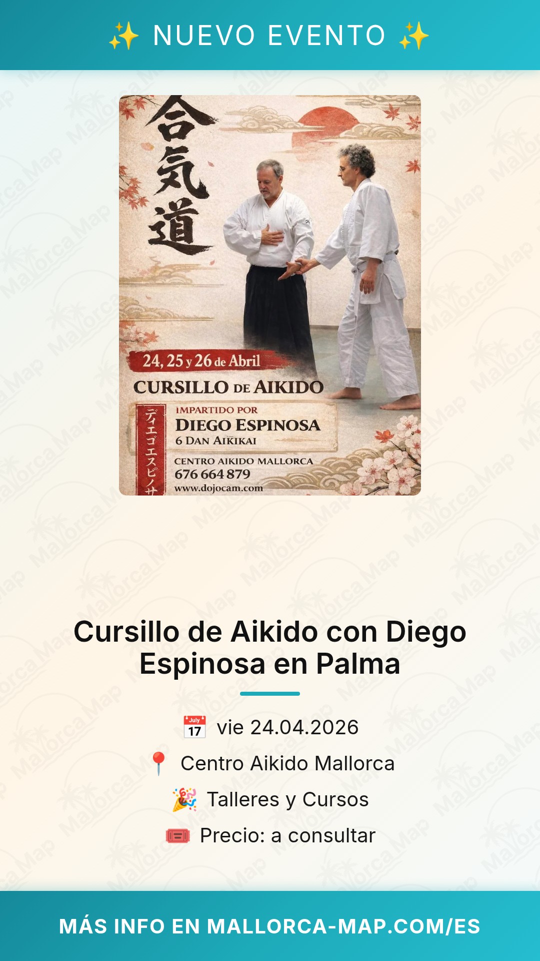¿Te apasionan las artes marciales y buscas una oportunidad única para perfeccionar tu técnica? El próximo 24 de abril de 2026, Palma se convierte en el epicentro del Aikido con un evento excepcional. El Centro Aikido Mallorca abre sus puertas para recibir un cursillo intensivo impartido por el reconocido maestro Diego Espinosa, cinturón negro 6º Dan Aikikai. Es una ocasión inmejorable para aprender de uno de los referentes de esta disciplina en un entorno dedicado al crecimiento personal y físico.