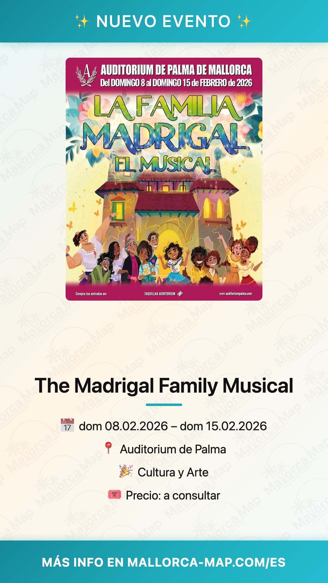 No te pierdas esta experiencia única: visita www.auditoriumpalma.es para más detalles y reserva tu entrada. ¡Vive la alegría del The Madrigal Family Musical y crea recuerdos que perdurarán!