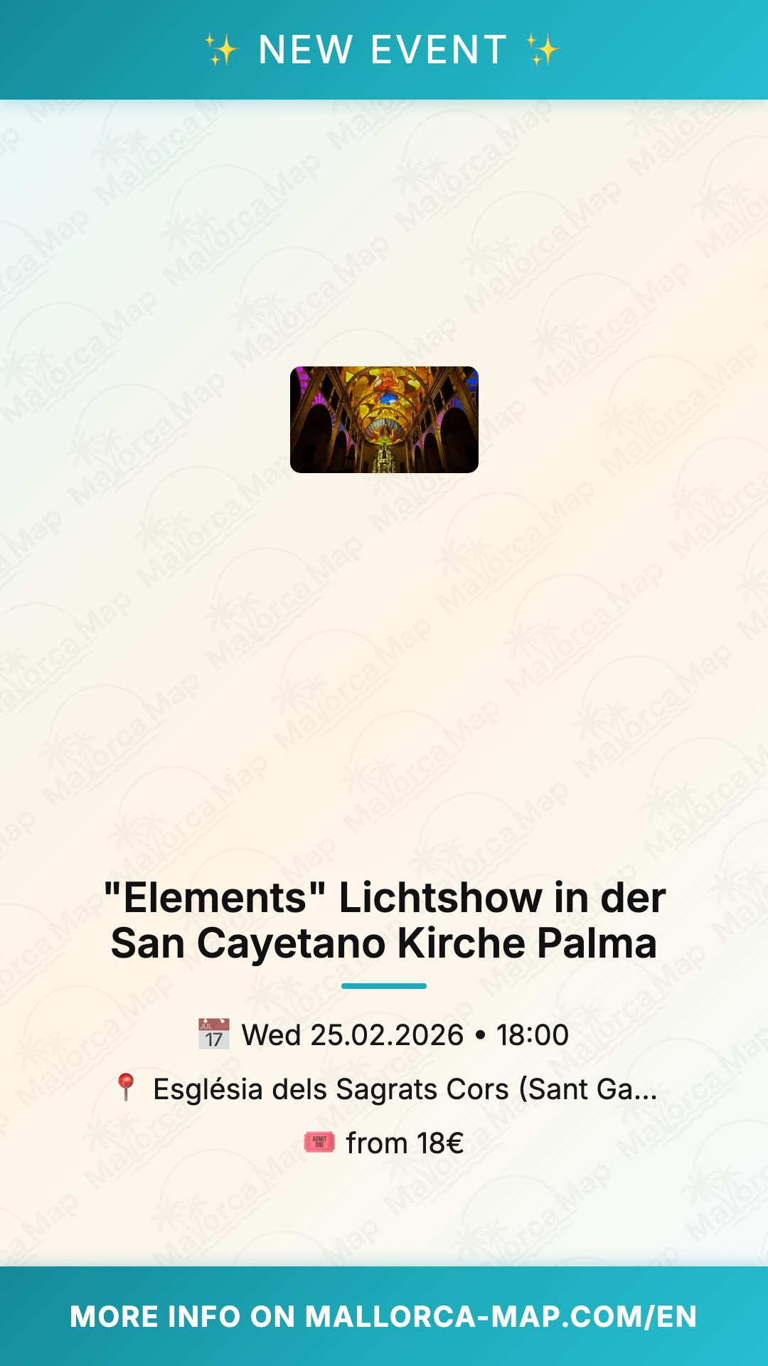 ¿Alguna vez has imaginado una iglesia convertida en un lienzo gigante de luz y sonido? En el corazón de Palma, la Iglesia de San Cayetano (Sant Gaietà) abre sus puertas para ofrecerte una experiencia sensorial única con el espectáculo "Elements". No es solo una visita a un templo histórico, sino una inmersión total en un universo de proyecciones que desafían la realidad y transforman el espacio arquitectónico en algo vivo.