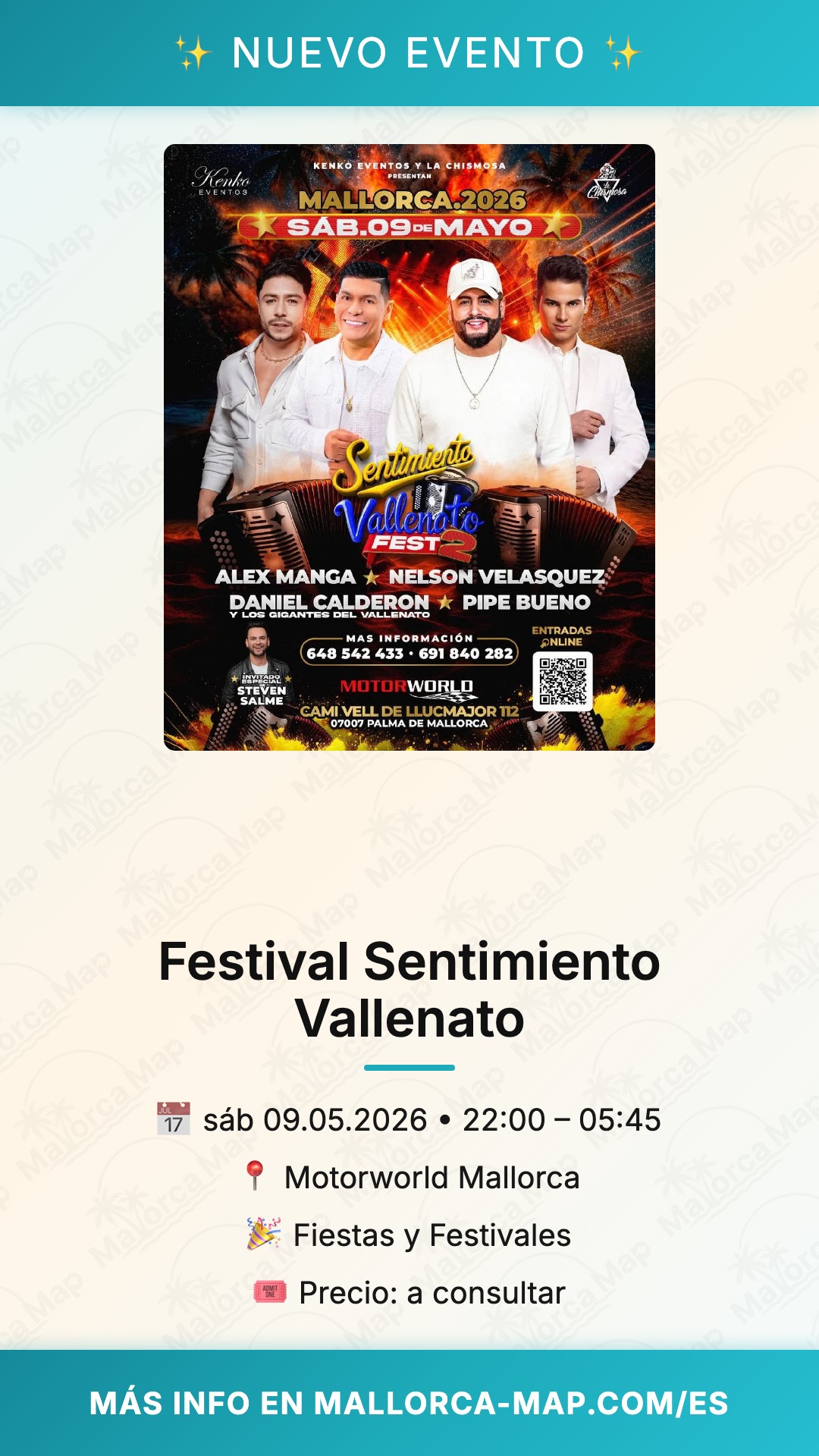 Para llegar al recinto en Palma, te recomendamos planificar tu trayecto con antelación, ya que se espera una gran afluencia de seguidores. Asegúrate de conseguir tu entrada pronto para no quedarte fuera de este evento único. Ven con calzado cómodo y muchas ganas de pasarlo bien. ¡No dejes que te lo cuenten y vive en primera persona la magia del vallenato en Mallorca! Te esperamos para celebrar juntos una noche que quedará grabada en tu memoria.