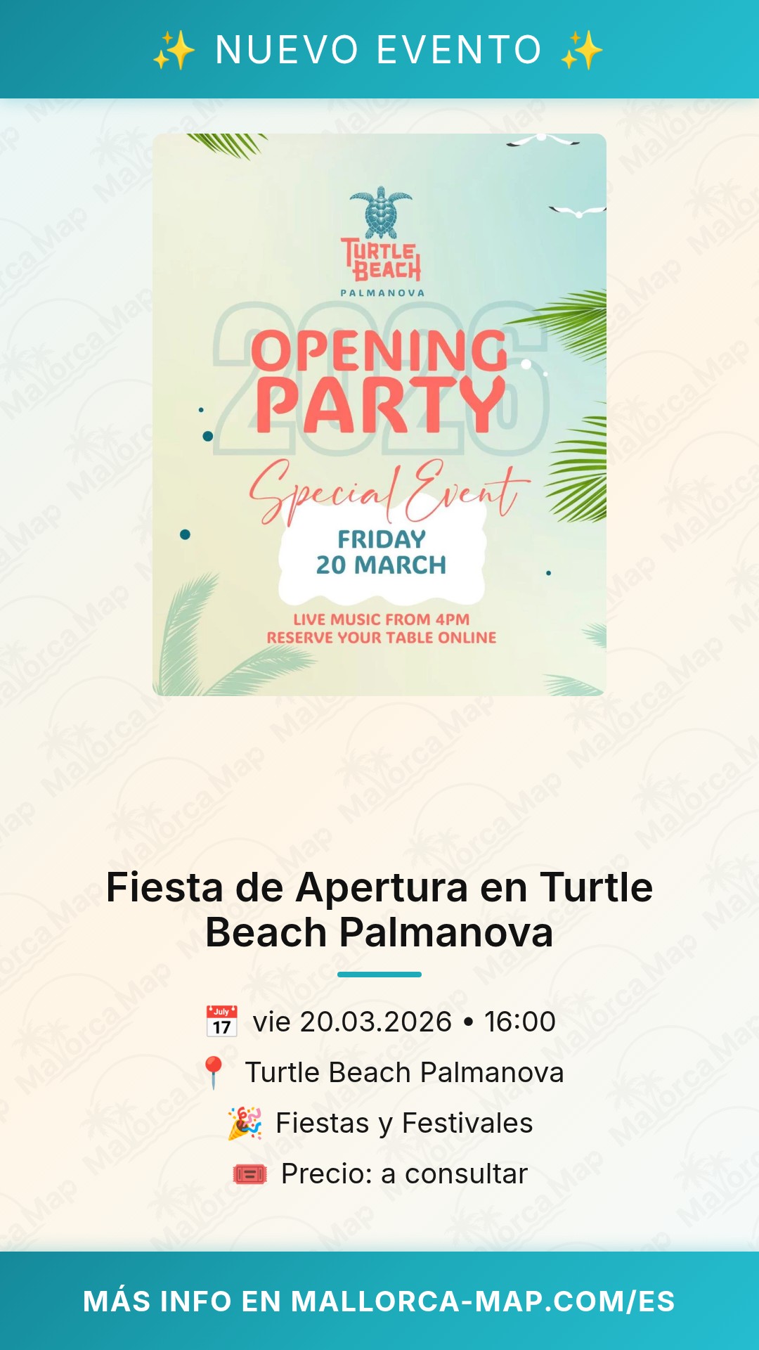 Acerca de Fiesta de Apertura en Turtle Beach Palmanova