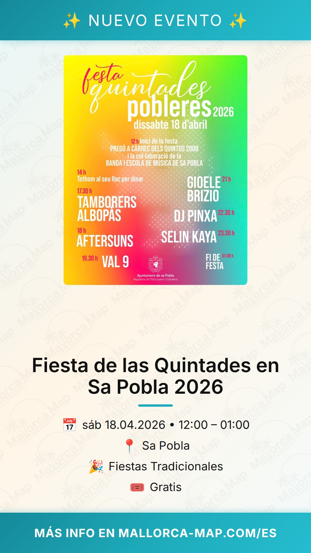Marca el 18 de abril en tu calendario. La acción comienza a las 12:00, el momento ideal para empezar con un buen aperitivo y dejarte llevar por el ritmo de Sa Pobla. Si vienes de fuera, te recomendamos llegar con tiempo para encontrar aparcamiento y asegurar tu sitio en el corazón de la fiesta. Trae calzado cómodo, muchas ganas de pasarlo bien y prepárate para descubrir por qué los poblers están tan orgullosos de sus raíces. ¡Te esperamos en Sa Pobla para vivir una experiencia que recordarás siempre!