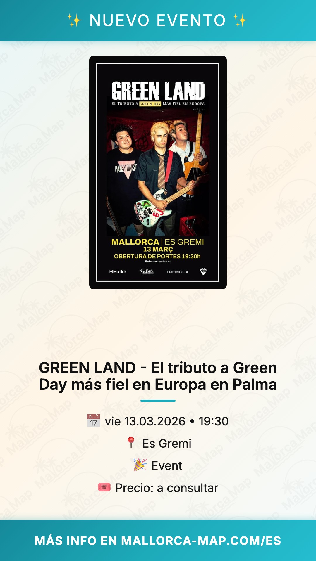 No dejes pasar la oportunidad de vivir este homenaje único. Las entradas están disponibles online, así que asegúrate de reservar tu lugar pronto para evitar sorpresas. Ven con tus amigos, prepárate para saltar y disfruta de una de las mejores noches de rock en Palma. ¡Nos vemos en Es Gremi para celebrar el legado de Green Day por todo lo alto!