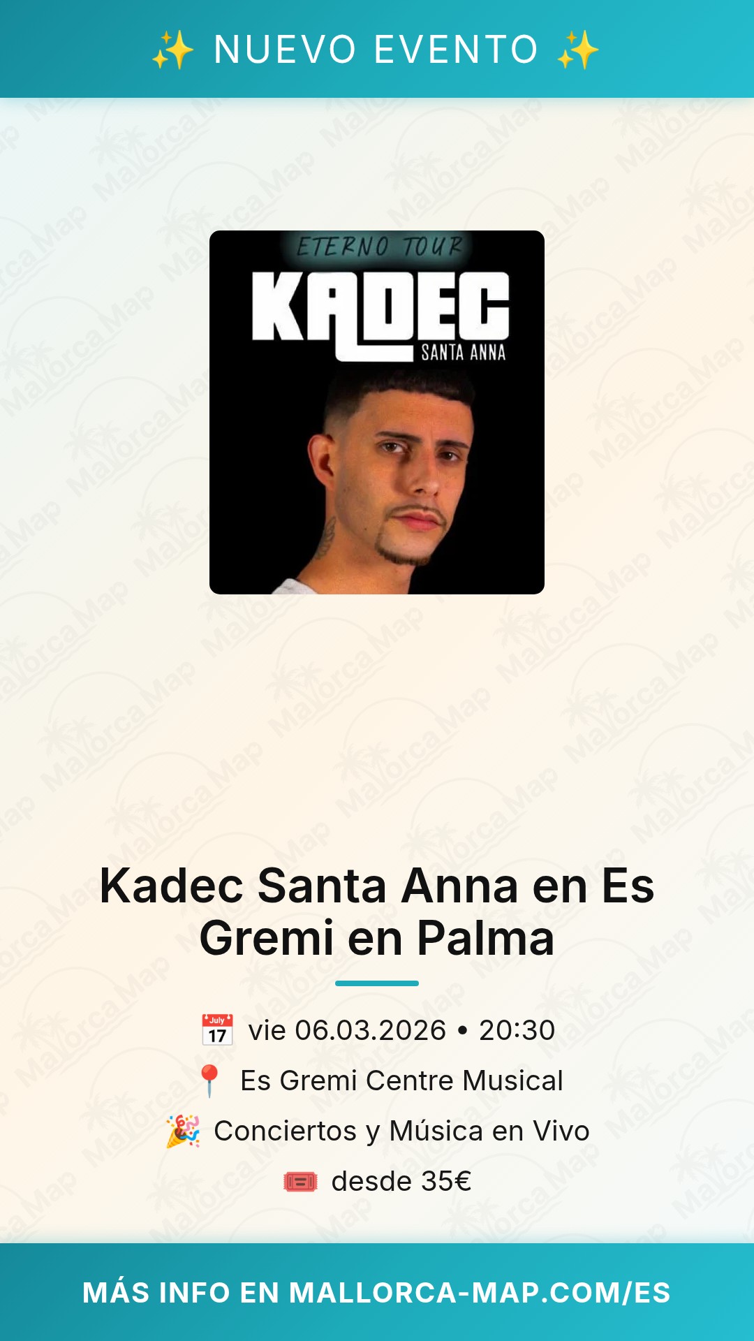 La cita comienza a las 20:30 horas, el momento ideal para empezar el fin de semana con buen pie en la capital mallorquina. Las entradas tienen un precio de 35 euros, una inversión que vale totalmente la pena por la calidad del espectáculo que Kadec ofrece. Recuerda que este tipo de eventos suelen agotar localidades rápidamente, así que no esperes al último momento para asegurar tu sitio. ¡Prepárate para una noche inolvidable de música y sentimientos en Palma!