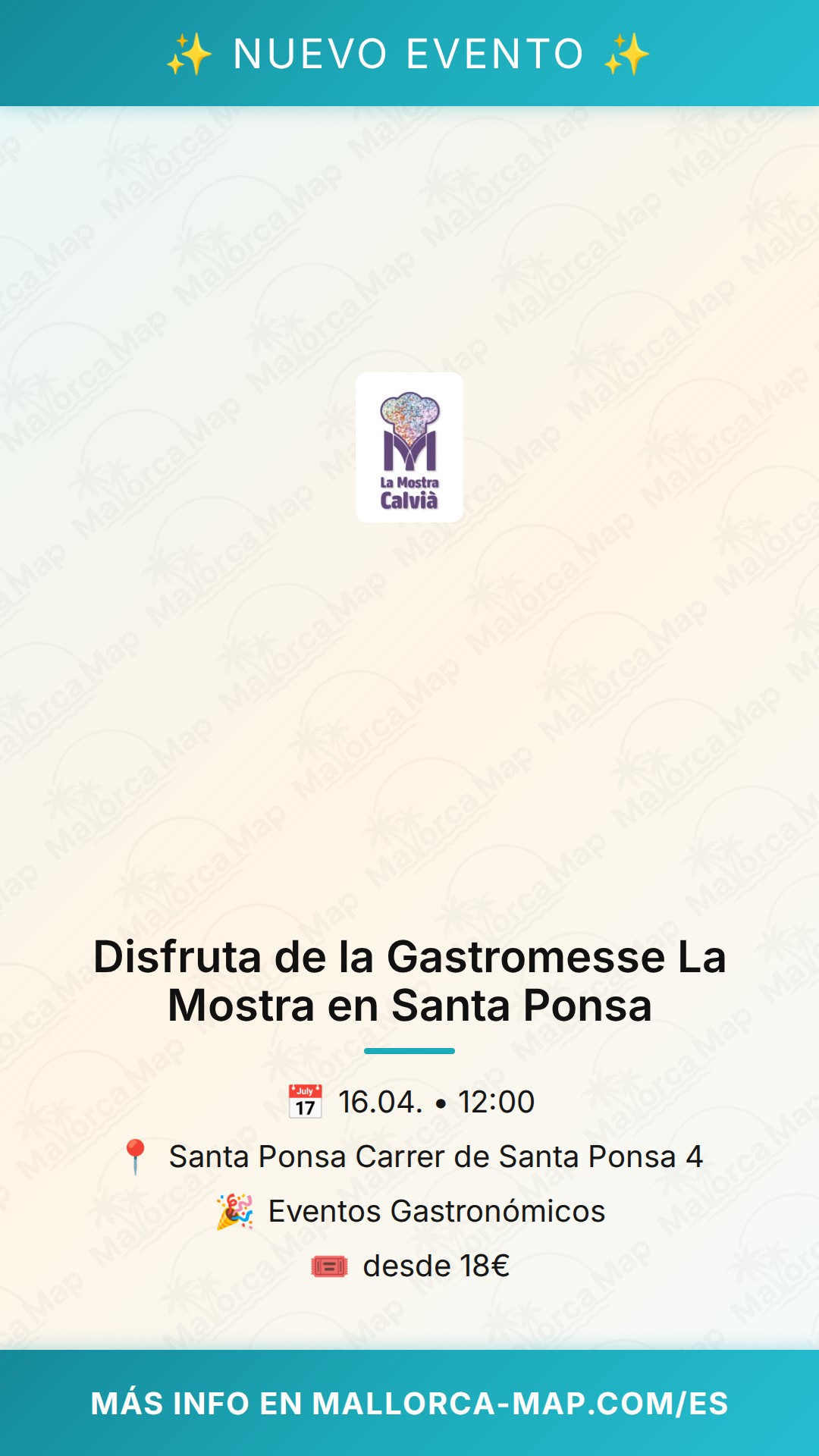 No dejes pasar la oportunidad de vivir esta experiencia sensorial. Te recomendamos llegar con tiempo para disfrutar de cada puesto sin prisas y aprovechar al máximo la oferta culinaria disponible. La cita es el próximo 16 de abril de 2026 en Santa Ponsa, una ubicación privilegiada para disfrutar de un día primaveral lleno de sabor y buen ambiente. ¡Prepara tu paladar para una jornada inolvidable y ven a descubrir por qué La Mostra es uno de los eventos más esperados por los aficionados a la gastronomía en Calvià! Te esperamos para compartir una experiencia que, sin duda, despertará tus sentidos y te permitirá llevarte un recuerdo delicioso de tu paso por Mallorca.