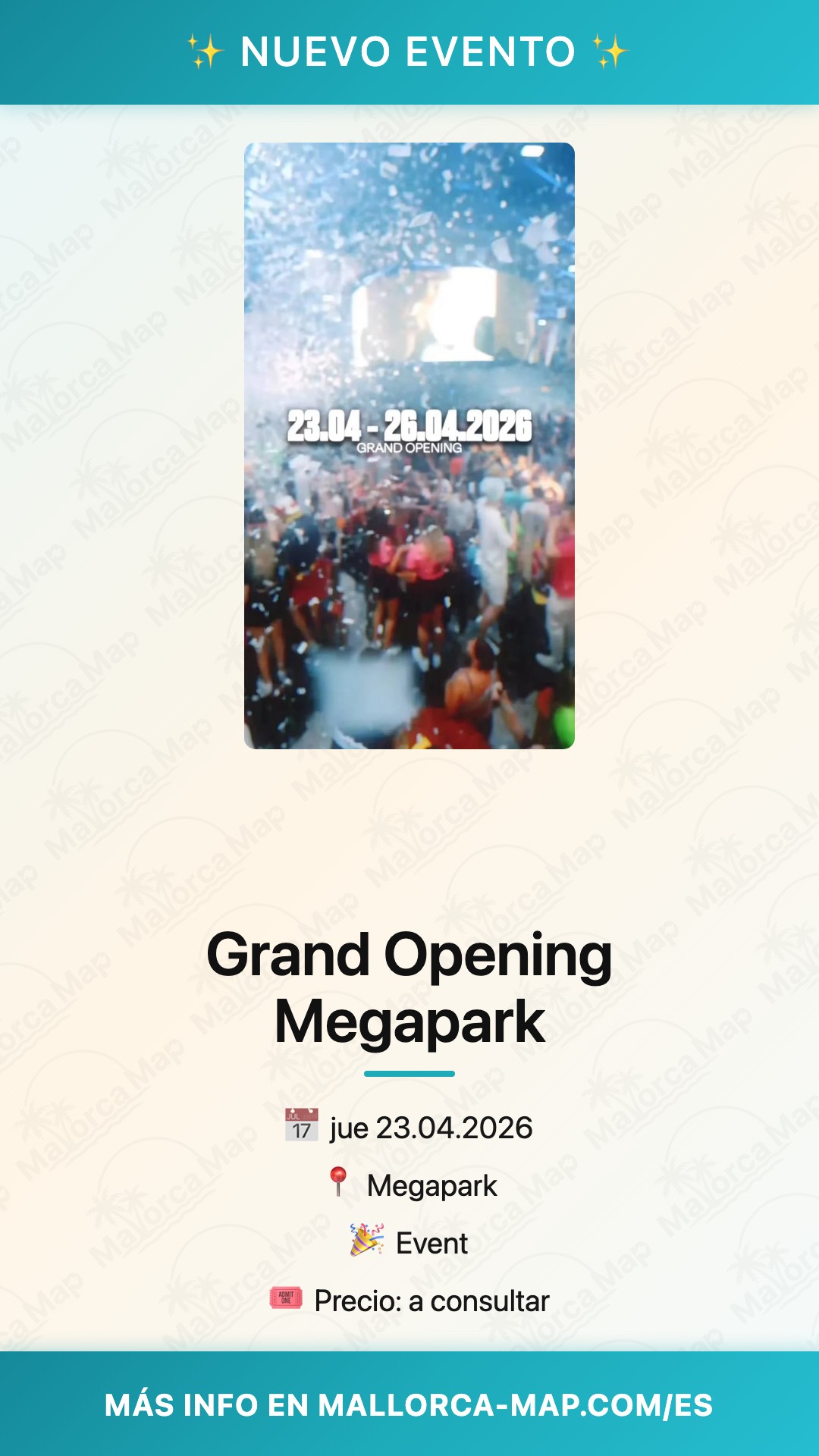 Vives el inicio de la temporada más esperada en la vibrante Playa de Palma con una energía que solo se siente una vez al año. El Grand Opening Megapark regresa el 23 de abril de 2026 para transformar la Carretera de l'Arenal 52 en el epicentro absoluto del ocio mundial. Este evento marca el comienzo oficial del verano en Mallorca, reuniendo a miles de entusiastas que buscan la combinación perfecta de sol, música y la atmósfera inigualable que solo este icónico recinto puede ofrecer. Sientes la emoción de entrar por primera vez en el año al templo del entretenimiento, donde cada detalle está diseñado para celebrar la vida bajo el cielo mediterráneo.