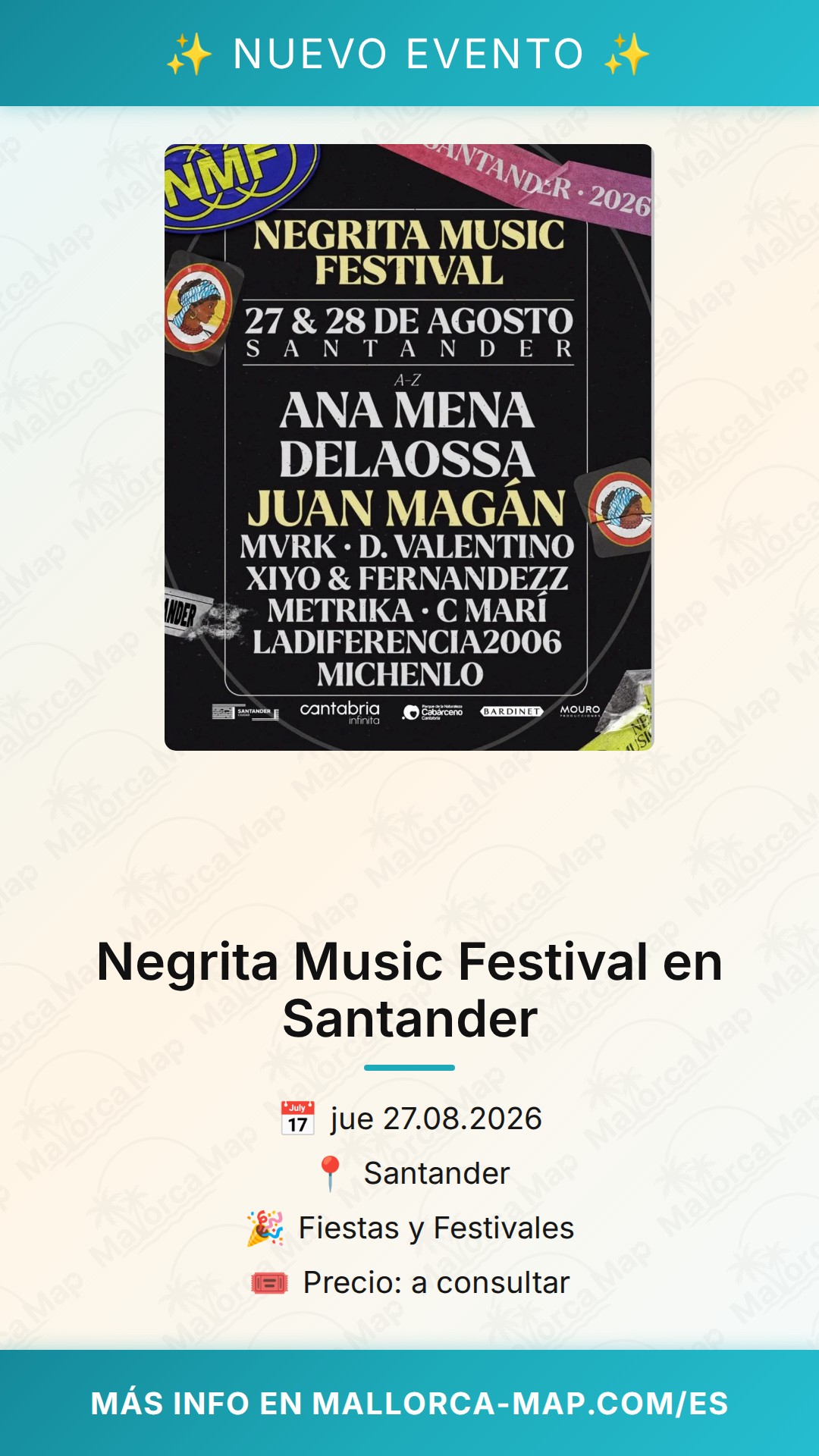 ¿Estás listo para vivir una de las experiencias musicales más intensas del verano? El Negrita Music Festival llega a Santander el 27 de agosto de 2026 para transformar la ciudad en el epicentro del ritmo y la diversión. Si buscas un plan que combine sol, buena compañía y los mejores artistas del momento, este festival es exactamente lo que necesitas para cerrar el mes de agosto por todo lo alto.