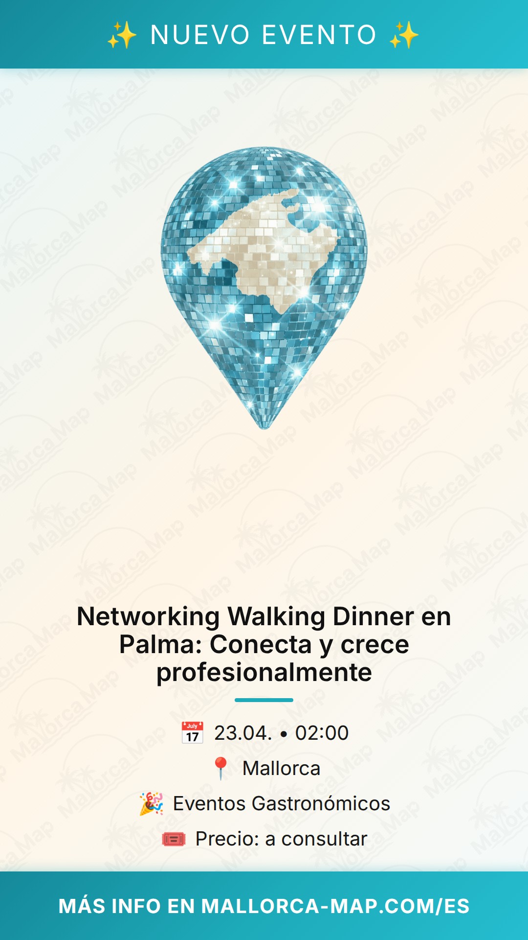 Si buscas una forma diferente de ampliar tu red de contactos en Mallorca, el Networking Walking Dinner en Palma es la cita que tienes marcada en tu calendario para el 23 de abril de 2026. Olvídate de los eventos corporativos rígidos y aburridos; esta propuesta combina la esencia del networking profesional con un formato dinámico y relajado que facilita las conversaciones genuinas mientras disfrutas de una experiencia gastronómica itinerante por algunos de los rincones más emblemáticos de la capital.