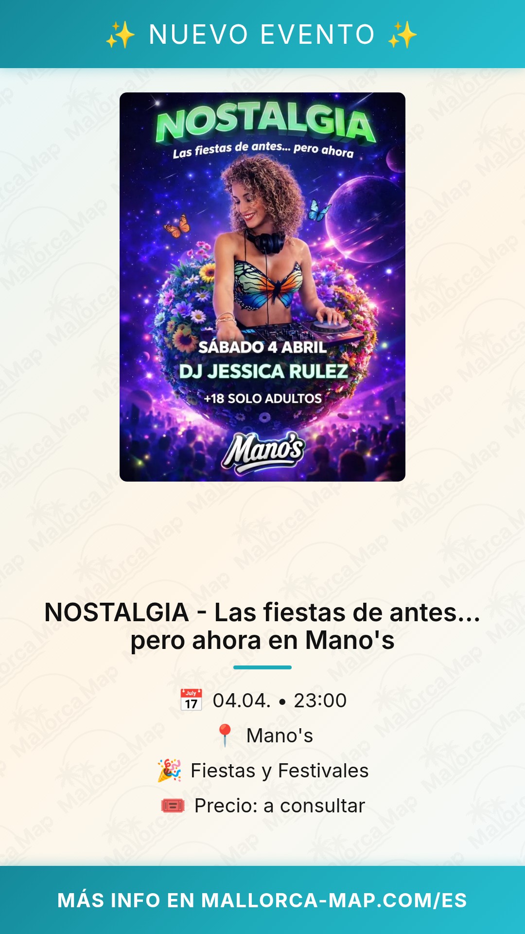 ¿Te acuerdas de esas noches interminables donde la música lo era todo y la pista de baile era tu único refugio? Prepárate, porque NOSTALGIA llega a Mano's en Mallorca para devolverte esa esencia única de las fiestas de antes, pero con la energía renovada del presente. Si buscas un plan auténtico y vibrante en la isla, esta es tu cita obligatoria el próximo 4 de abril.