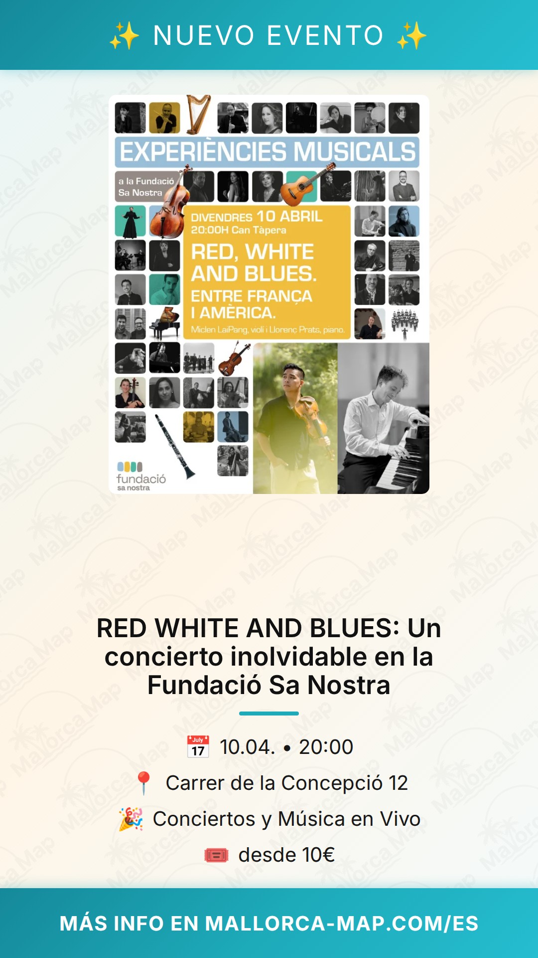 Recuerda revisar los detalles de acceso y horarios locales para planificar tu llegada con comodidad. Estamos convencidos de que "RED WHITE AND BLUES" será uno de los momentos destacados de tu agenda cultural en Mallorca este mes de abril.