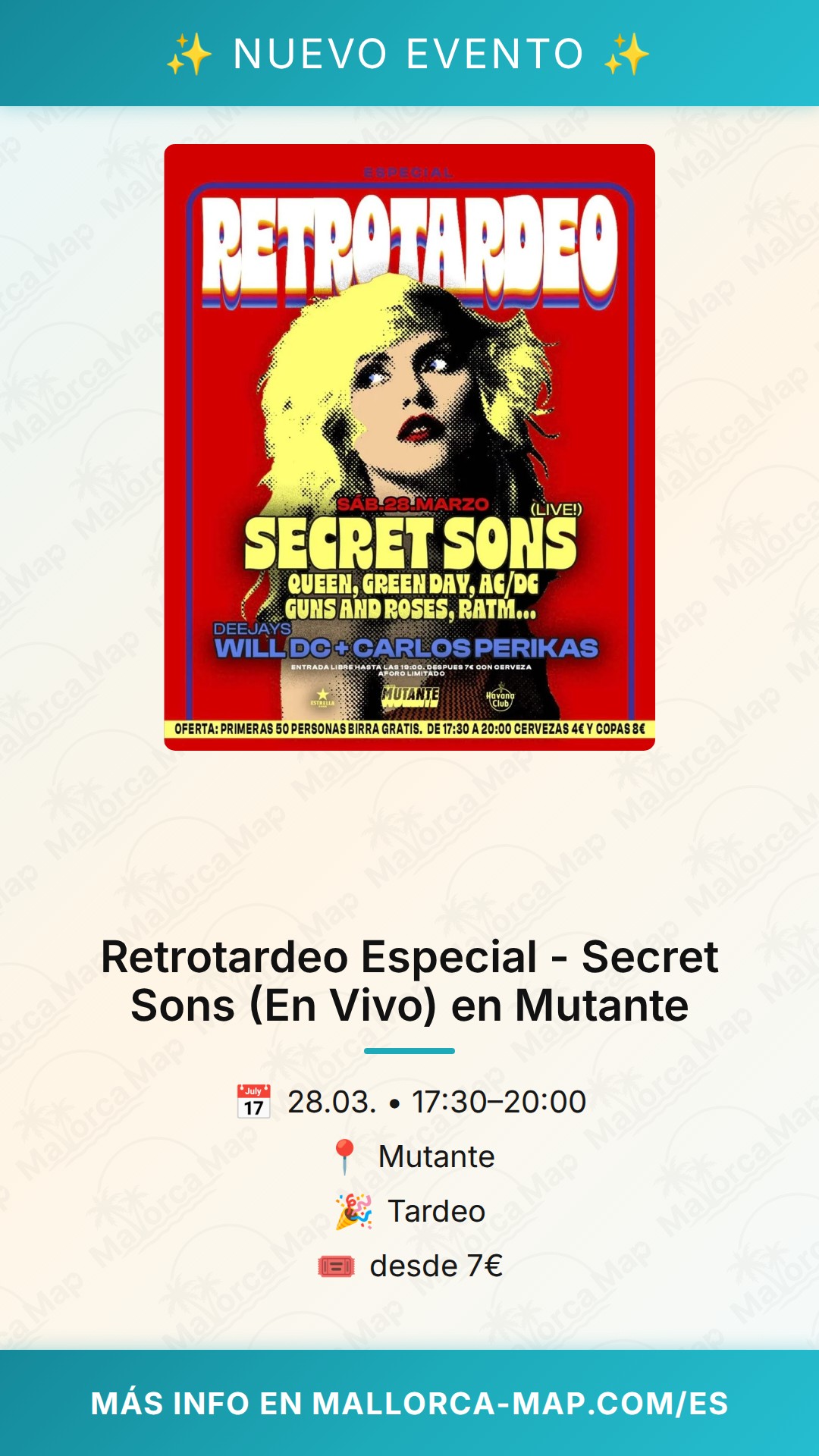 ¿Buscas el plan perfecto para el sábado por la tarde en Palma? Prepárate para una experiencia única en Mutante con el Retrotardeo Especial. Si eres amante del rock clásico y las buenas vibras, este es el evento que no te puedes perder. La cita es el próximo 28 de marzo y promete ser una de esas tardes que se alargan entre risas, música y amigos.