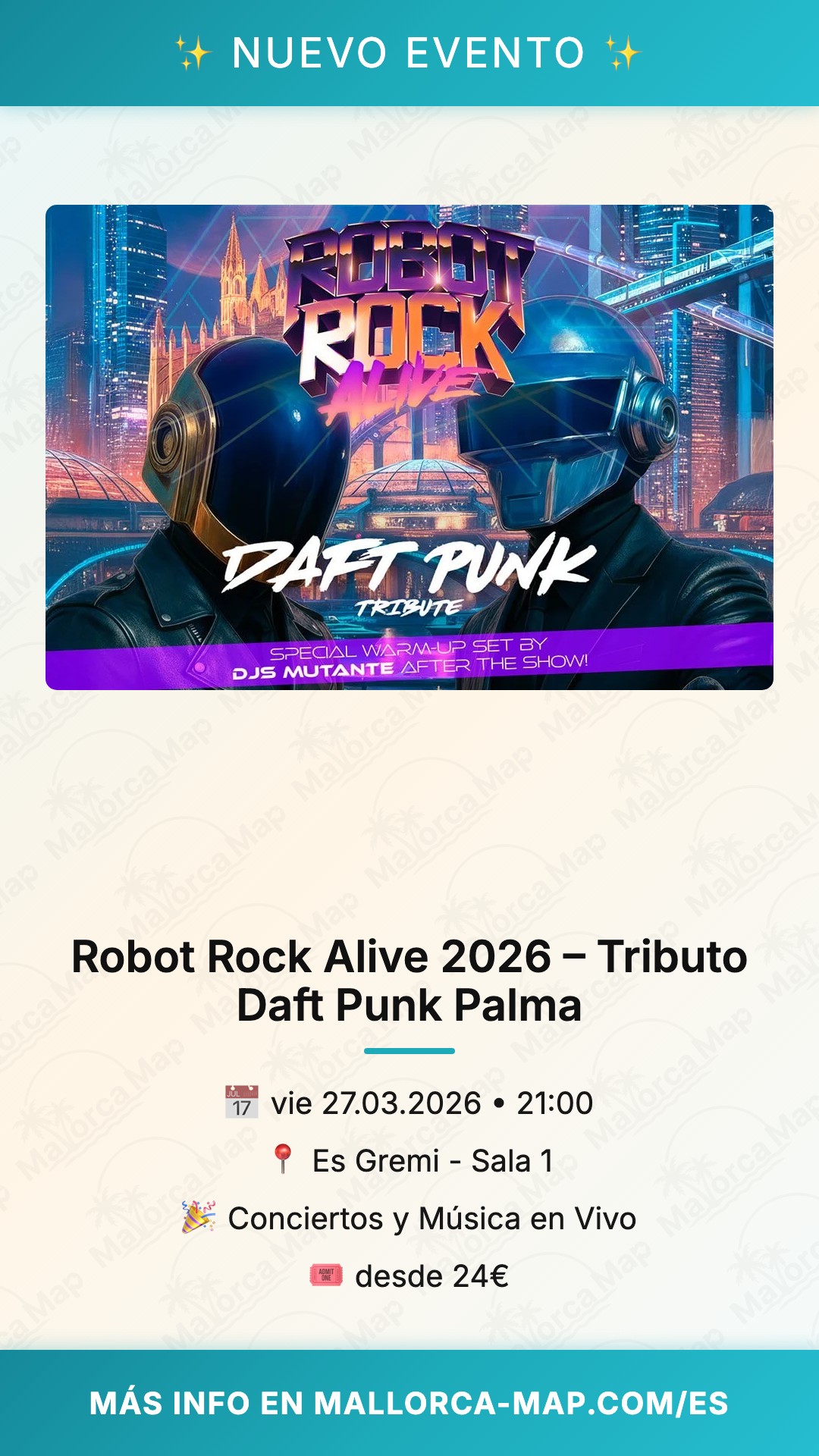 Llega temprano para captar la mejor posición en esta sala emblemática. Reserva tus entradas y vive el revival de Daft Punk en directo, un evento que une generaciones en la isla. ¡No te lo pierdas en plena primavera mallorquina!