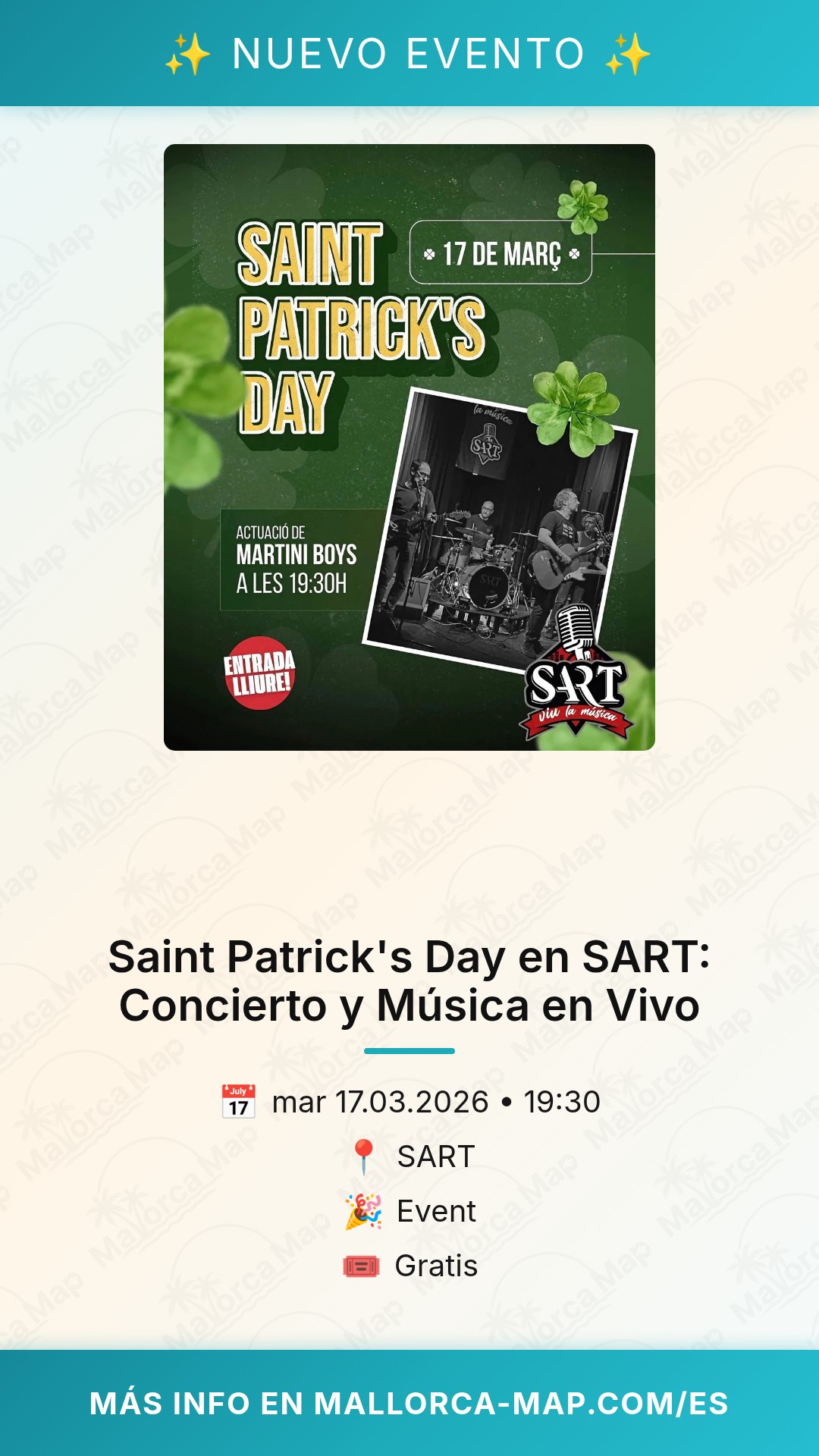 ¿Buscas el plan perfecto para celebrar el día más verde del año en Mallorca? Pues prepárate, porque Saint Patrick's Day llega al emblemático SART con toda la energía que esperas de una noche dedicada al patrón de Irlanda. Si te encuentras por la isla y quieres vivir un ambiente auténtico, cargado de buena vibra y excelente música, este es definitivamente tu sitio para el 17 de marzo.