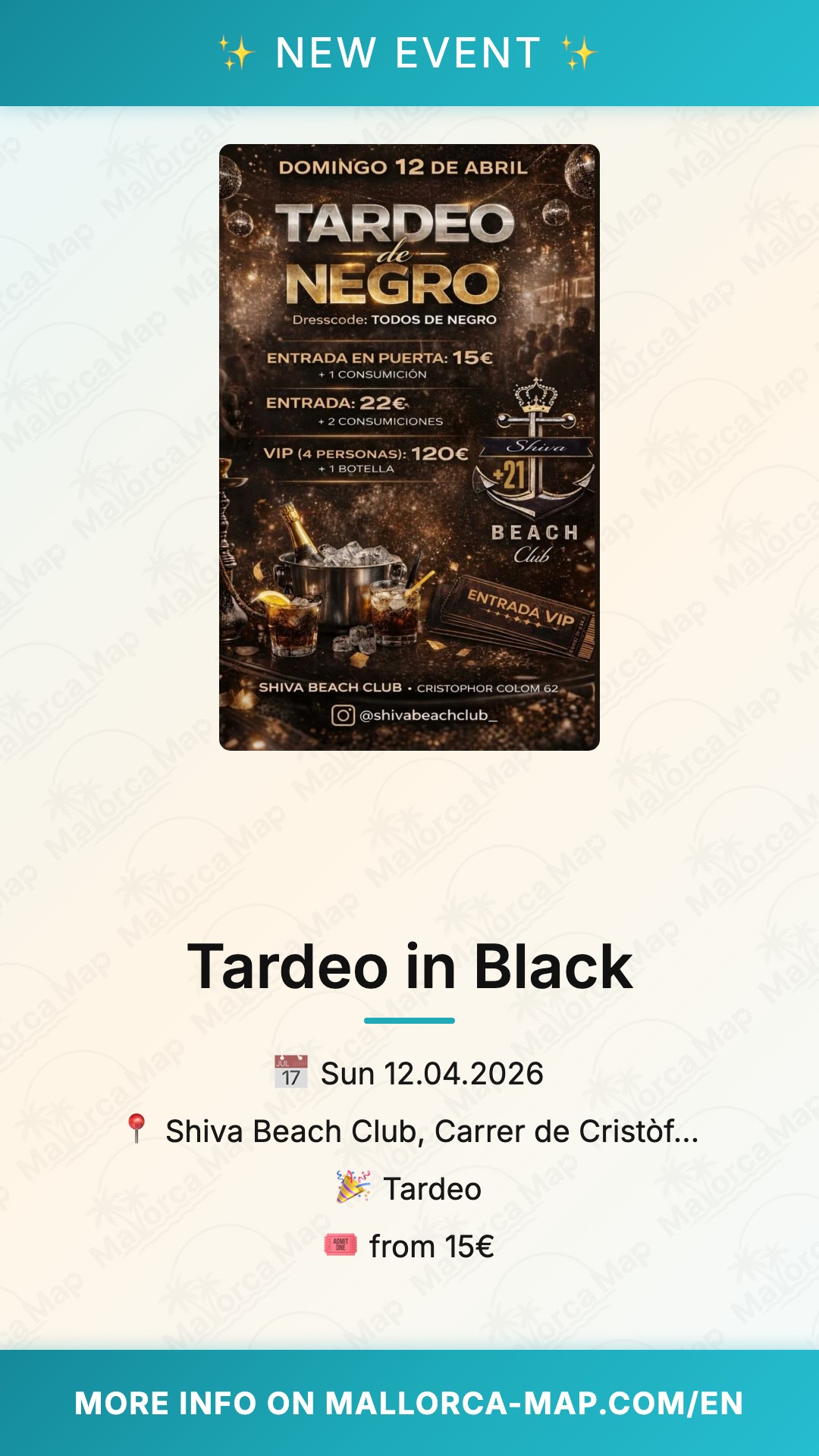 Vives una experiencia única frente al mar Mediterráneo en una de las citas más esperadas de la temporada de primavera. El próximo 12 de abril de 2026, el Tardeo in Black se apodera del Shiva Beach Club en la Carrer de Cristòfor Colom 62, transformando El Arenal en el epicentro de la elegancia y la diversión. Esta fiesta no es solo un evento más en el calendario de Mallorca; es la oportunidad perfecta para disfrutar de una tarde inolvidable donde el estilo y el ritmo se fusionan bajo el sol balear. Con el Dresscode Negro como protagonista, la atmósfera se tiñe de sofisticación mientras las olas del mar acompañan los primeros compases de una jornada que promete emociones fuertes.