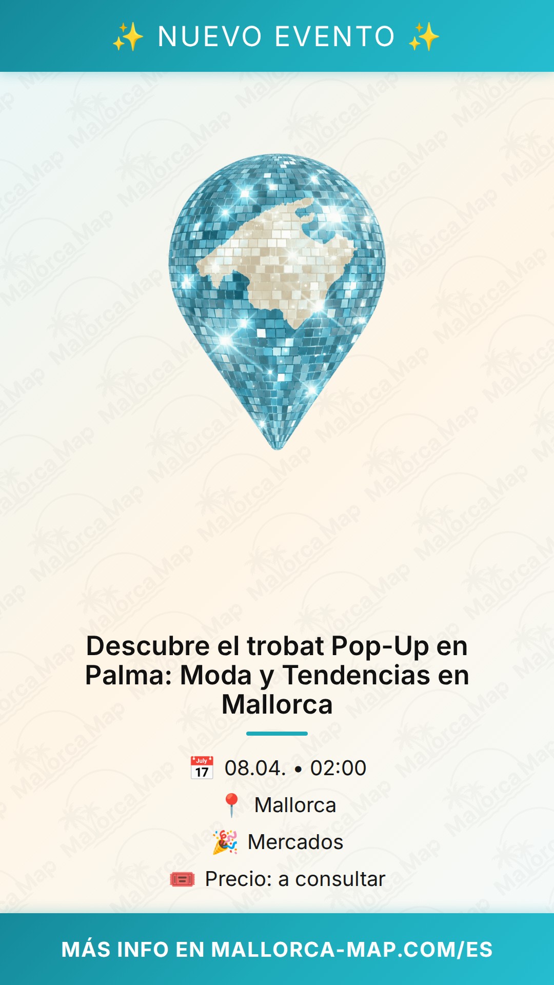 Te esperamos para compartir una experiencia auténtica y vibrante en la ciudad. No dejes pasar la fecha y marca el 8 de abril de 2026 en tu calendario para no perderte esta cita con el estilo y la creatividad en Mallorca. ¡Ven a vivir el trobat Pop-Up y déjate inspirar por lo mejor del talento local en un entorno dinámico y acogedor!