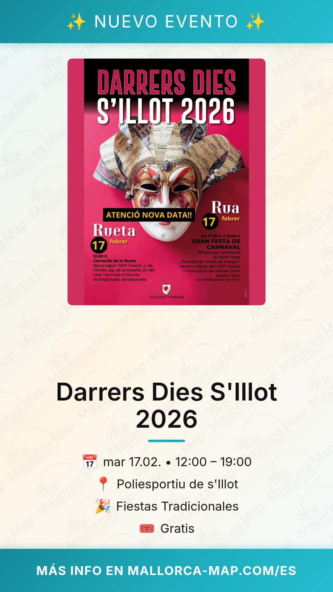 ¿Estás listo para vivir la magia de los Últimos Días en S'Illot? Este 17 de febrero de 2026, la localidad de Manacor se viste de gala para celebrar una de las tradiciones más queridas del calendario insular. Los Darrers Dies marcan el punto álgido del carnaval antes de la Cuaresma, ofreciendo una jornada llena de color y alegría. Podrás disfrutar de un ambiente festivo único donde la entrada gratuita permite que todos se unan a la diversión sin restricciones en Mallorca.