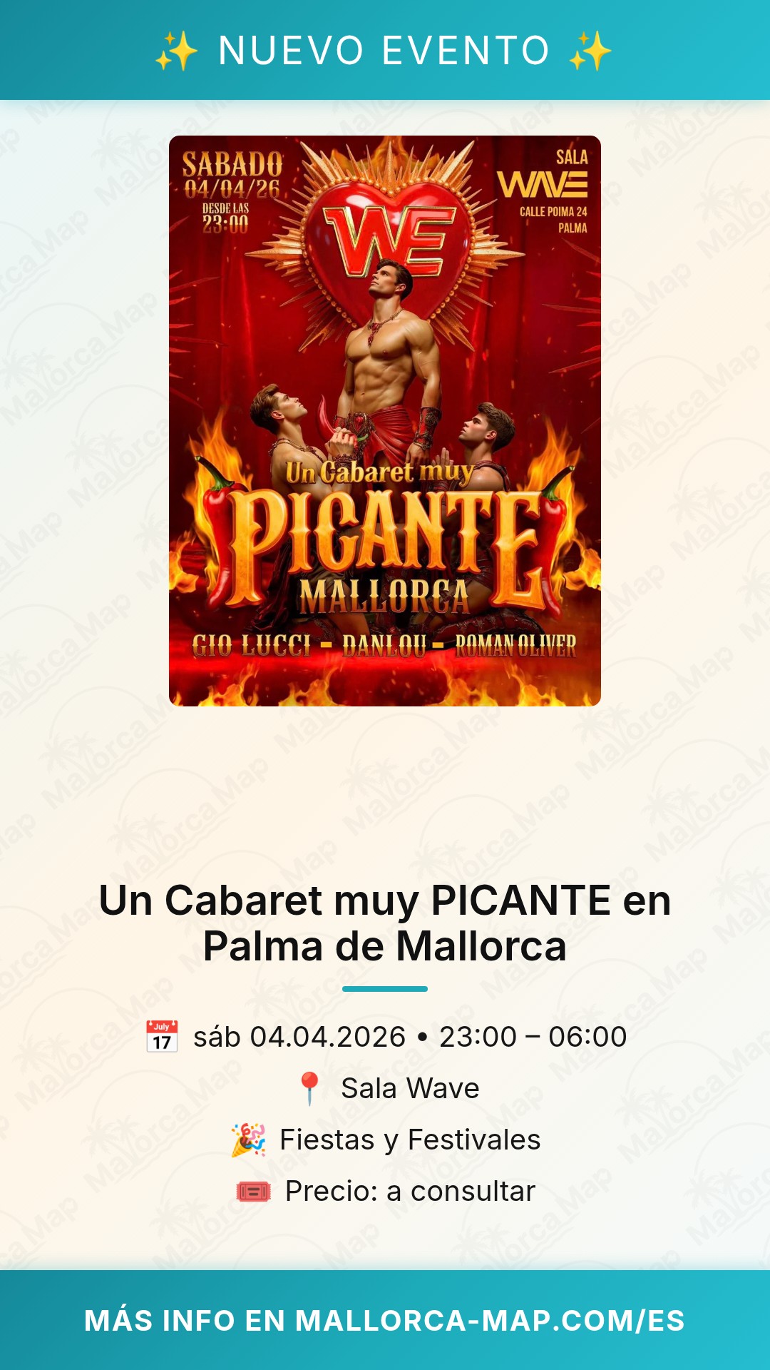 No dejes que te lo cuenten otros. La noche mallorquina se vive con mayor intensidad cuando hay talento fusionándose en un espectáculo diseñado para el disfrute máximo. Asegúrate de llegar puntual para coger un buen sitio, pedir tu copa favorita y dejarte llevar por la atmósfera eléctrica que solo un evento de este calibre puede generar en la isla. "Un Cabaret muy PICANTE" es más que un simple show; es la celebración de la libertad, el arte y la noche en Palma. ¡Ven y vive una experiencia inolvidable!