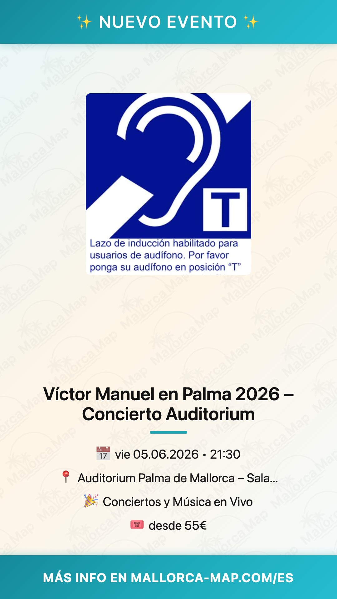 Para tu comodidad, el recinto en la Avenida Gabriel Roca cuenta con excelentes opciones de acceso en el corazón de Palma. Al ser un evento de alta demanda, te recomendamos asegurar tu lugar con antelación, ya que las localidades para la Sala Magna suelen completarse rápidamente. Las entradas se sitúan en un segmento de precio moderado-alto, reflejando la exclusividad de este encuentro musical. ¡No pierdas la oportunidad de vivir este reencuentro histórico con la voz de Víctor Manuel!