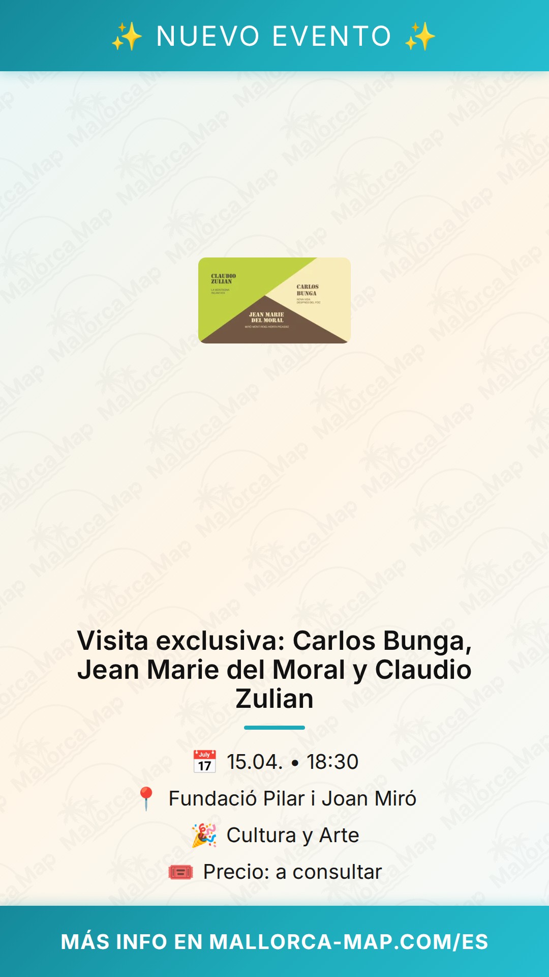 Si eres un apasionado del arte contemporáneo y buscas una experiencia íntima en Mallorca, no puedes perderte esta cita especial en la Fundació Pilar i Joan Miró. El próximo 15 de abril de 2026, la fundación abre sus puertas de manera exclusiva para los Amigos de la institución, ofreciéndote una oportunidad única de explorar la obra de tres figuras destacadas del panorama artístico actual: Carlos Bunga, Jean Marie del Moral y Claudio Zulian.