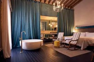 La verdadera joya de este establecimiento es su jardín privado, el más grande del centro de la ciudad, que funciona como un auténtico pulmón verde. Aquí, la naturaleza envuelve la arquitectura, creando un microclima de paz donde puedes disfrutar de un desayuno tranquilo o una tarde de lectura bajo la sombra de árboles centenarios. Entre sus servicios más destacados se encuentra su spa subterráneo, un espacio íntimo tallado entre muros antiguos que ofrece tratamientos personalizados para revitalizar cuerpo y mente. Las suites, decoradas con un gusto exquisito, combinan textiles de terciopelo, piezas de anticuario y tecnología de vanguardia para garantizar un descanso reparador y una experiencia de alojamiento exclusivo.