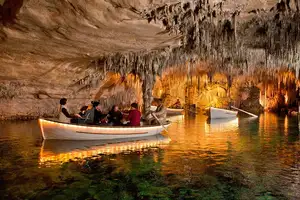 El día comienza con la Cuevas del Drach, el icono de las cuevas de Mallorca. Bajas por escaleras iluminadas hasta el lago subterráneo de un azul hipnótico, donde subes a una barca para un paseo mágico. Escuchas el concierto de música clásica con eco en las bóvedas, un espectáculo único que combina agua, luz y sonido. Después, continúas a las Coves dels Hams, con sus lagos cristalinos, cascadas naturales y formaciones rocosas que parecen joyas. Recorres pasarelas elevadas admirando estalactitas y estalagmitas en un ambiente fresco y misterioso. Todo el itinerario fluye con guías expertos que comparten anécdotas fascinantes sobre la geología de Mallorca.